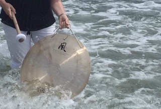 From 2018-19, I travelled with a 24″ wind gong and performed on the Columbia Icefield in Alberta, along lakes in BC, on ViaRail train platforms in Ontario, and in the water/on the beach near Boston, USA.